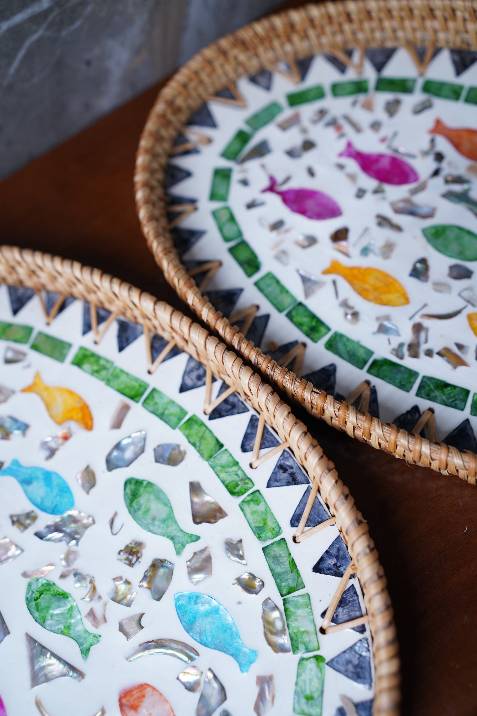 Where natural textures meet intricate craftsmanship — rattan borders surrounding a mother of pearl base. Perfect for everyday use, from serving to styling with ease.